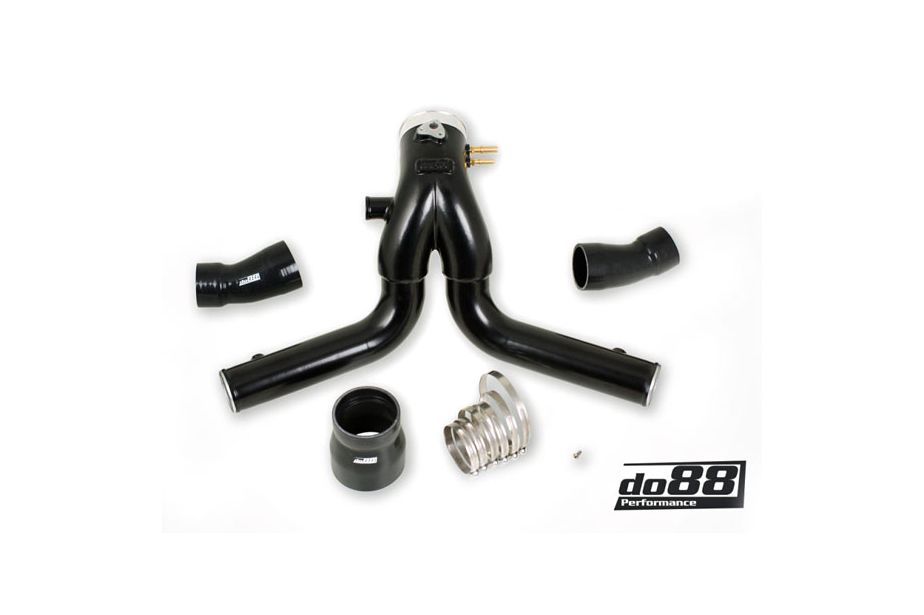 The kit also includes 2 high quality custom designed silicone hoses which are available in two different versions. Which version you need depends on if you will install the y-pipe together with the OEM intercoolers or the do88 performance intercoolers.